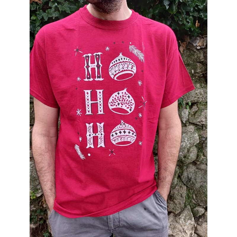 t-shirt rouge chiné imprimé bordeaux et blanc